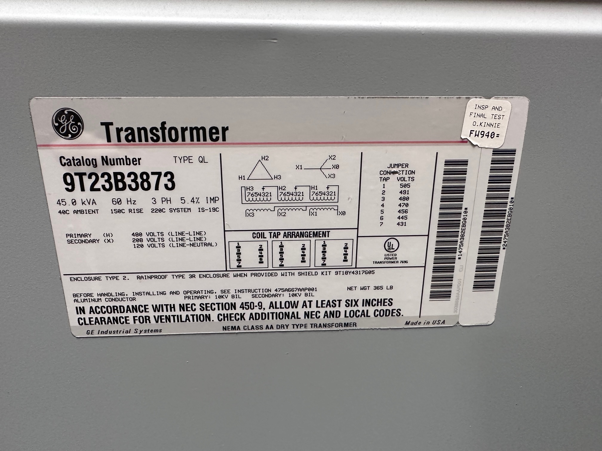 ESU buys and sells new & used GE Transformers General Electric 3 Phase 480V 45 kVa
